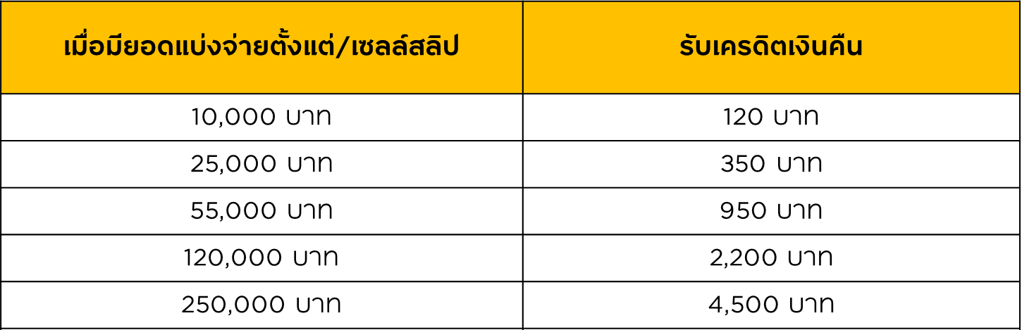 เมื่อมียอดผ่อนชำระ 3,000 บาทขึ้นไปต่อเซลล์สลิป