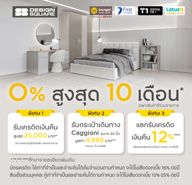 • ผ่อนชำระ 0% สูงสุด 10 เดือนสำหรับสินค้าที่ร่วมรายการ
