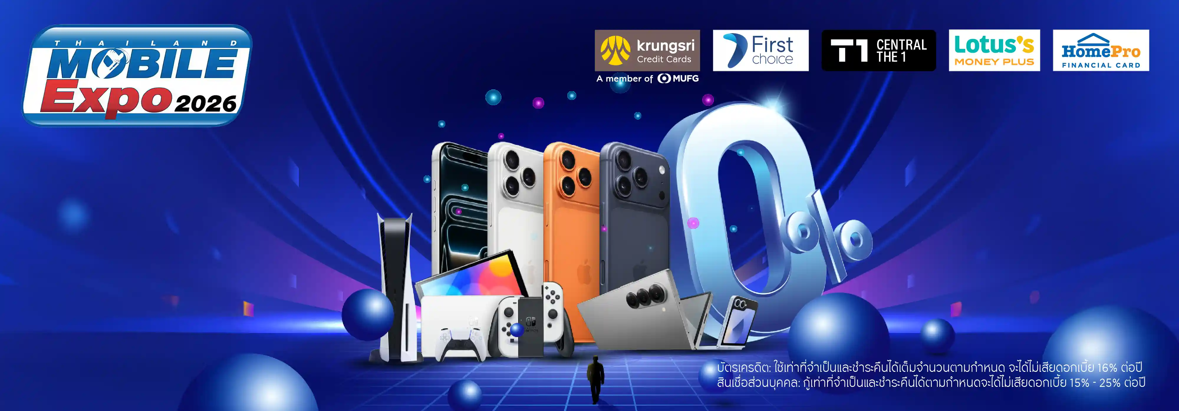 ผ่อน 0% นานสูงสุด 24 เดือน* ในงาน Thailand Mobile Expo2026