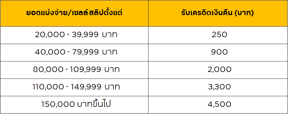 **จำกัดการรับเครดิตเงินคืนสูงสุด 45,000 บาท/บัญชีบัตรหลักตลอดรายการ (หรือรูดผ่อนด้วยยอด 150,000บาทต่อเซลล์ลสิปจำนวน 10 ครั้ง)