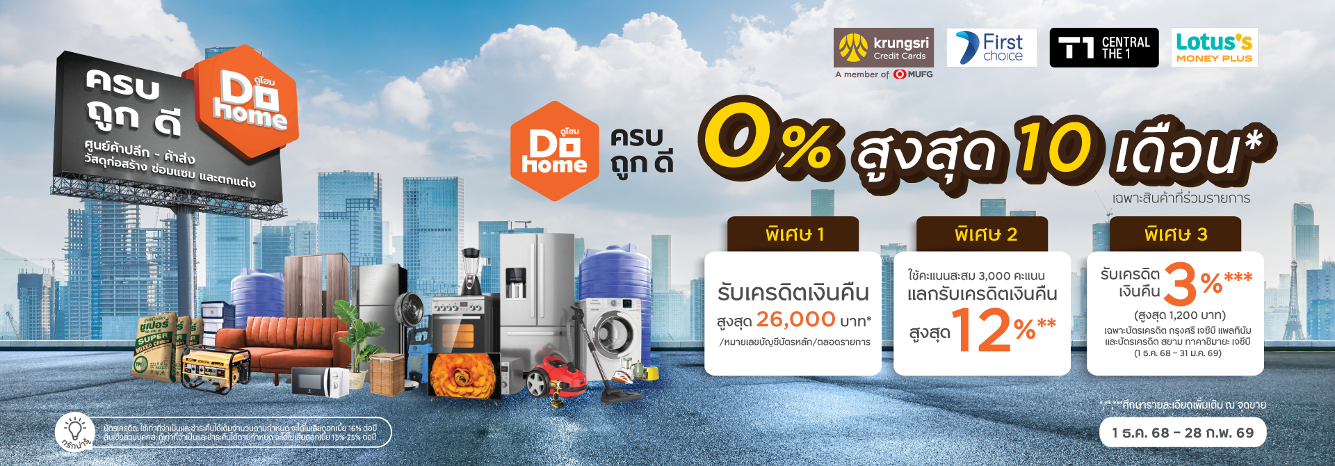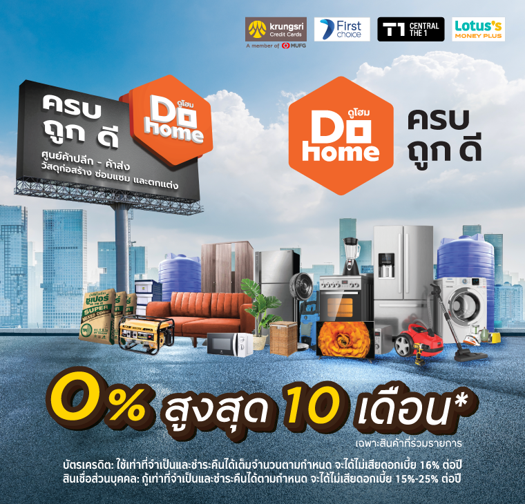 • สอบถามรายละเอียดและเงื่อนไขเพิ่มเติม ณ จุดขายดูโฮม หรือ www.dohome.co.th เฉพาะร้านค้า สาขา และสินค้าที่ร่วมรายการเท่านั้น
