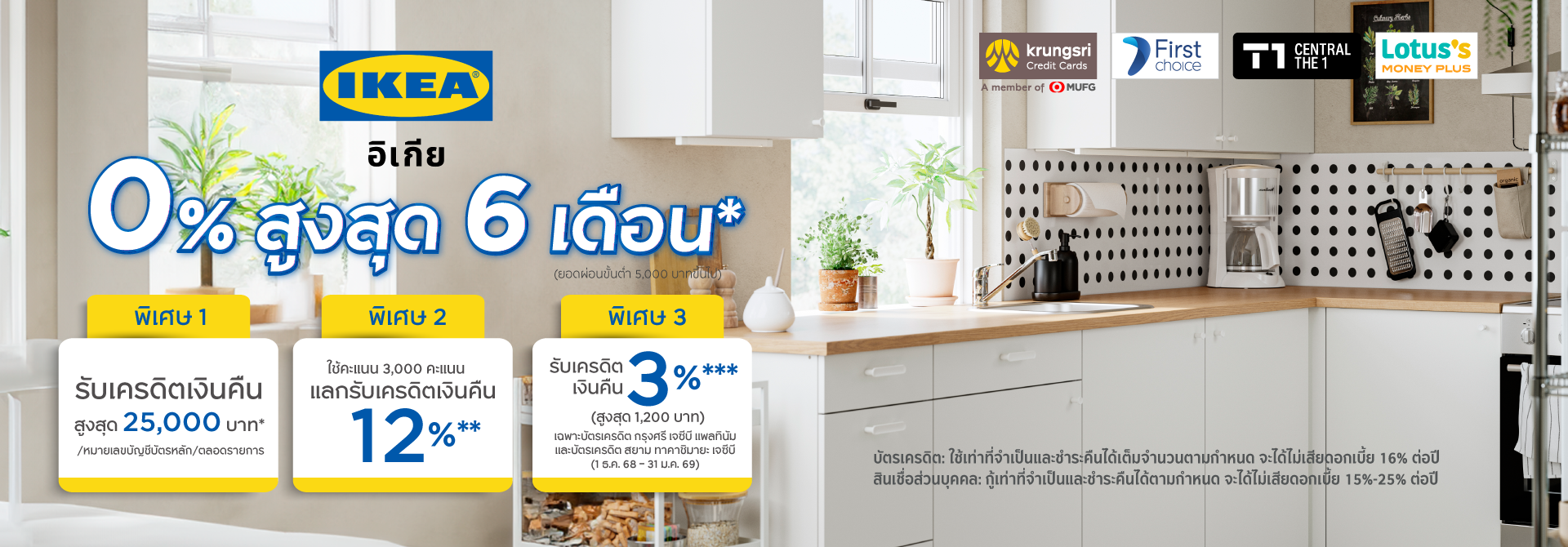 • รายการส่งเสริมการขายนี้สามารถใช้ร่วมกับการผ่อนชำระผ่านช่องทางออนไลน์ www.IKEA.co.th ได้