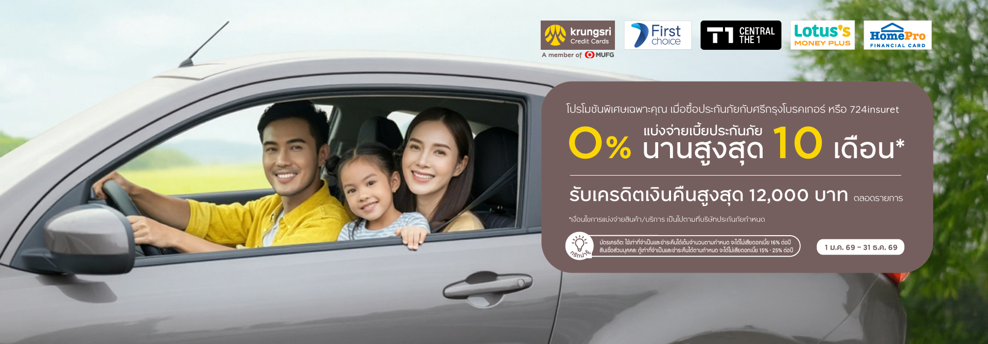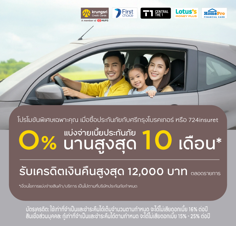 • แบ่งชำระ 0% นานสูงสุด 10 เดือน เฉพาะประกันที่ร่วมรายการ เท่านั้น