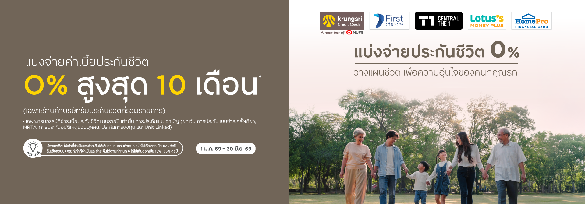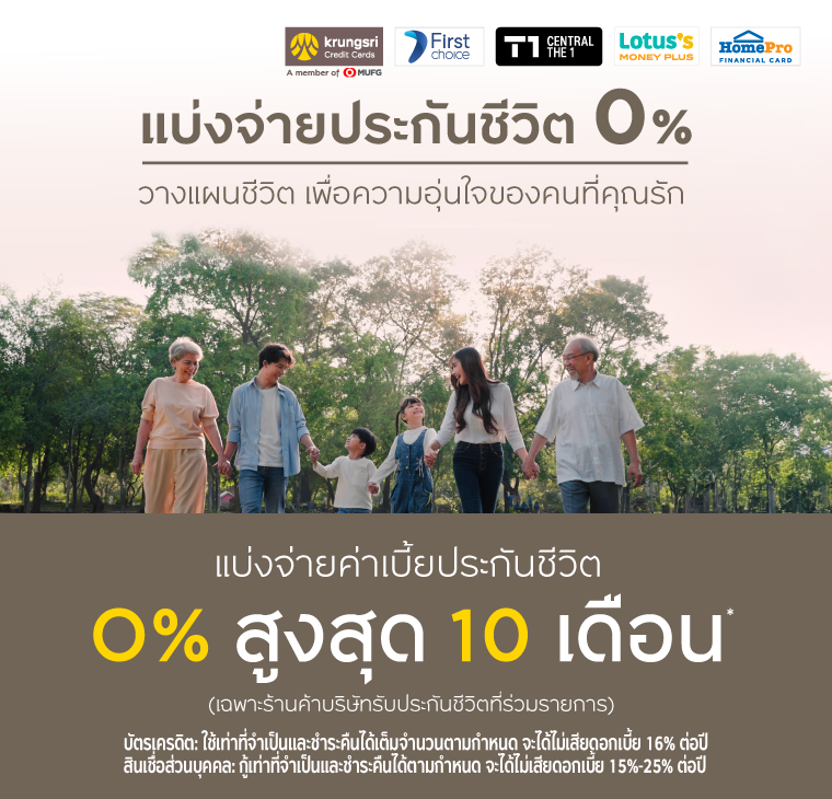 • แบ่งชำระ 0% นานสูงสุด 10 เดือน เฉพาะประกันที่ร่วมรายการ เท่านั้น