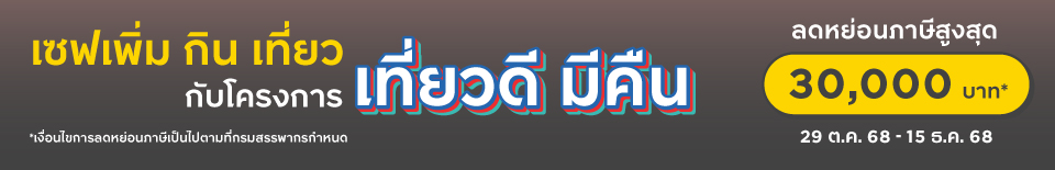 เที่ยวเซฟ 5%* กับโรงแรมทั่วไทย เว็บไซต์ท่องเที่ยว และสายการบินที่ร่วมรายการ*