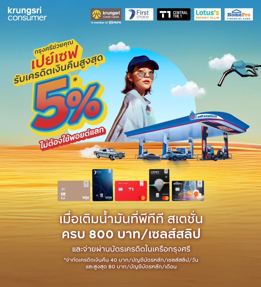 น้ำมันเซฟ 5%* ณ สถานีบริการพีทีที สเตชั่นทั่วไทย