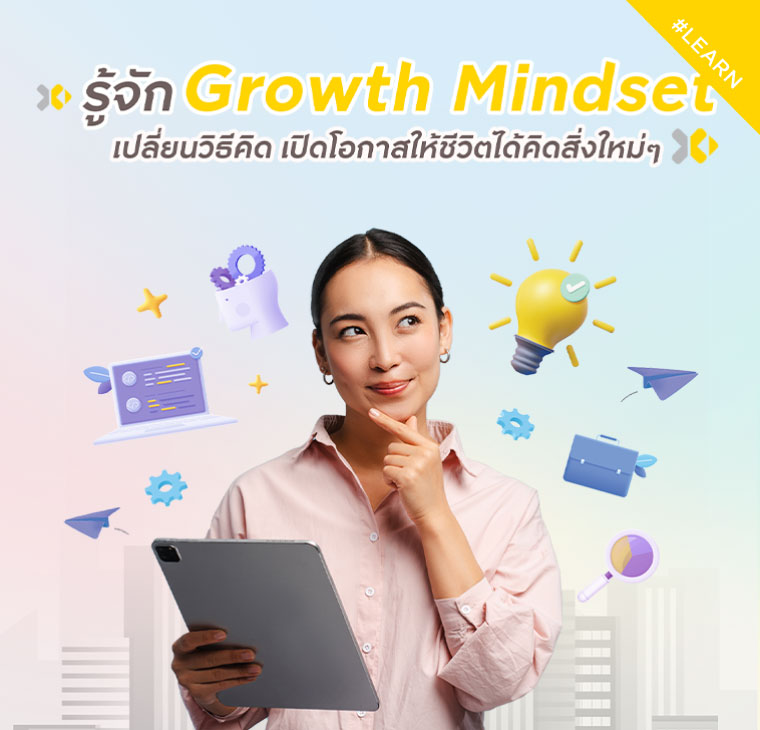 การมี Growth Mindset จะช่วยเปิดโอกาสใหม่ ๆ ในทุกสถานการณ์ ให้เรามองเห็นโอกาสในการพัฒนาตัวเอง รู้จักพลิกวิกฤตให้เป็นโอกาส พร้อมที่จะปรับตัวกับความเปลี่ยนแปลง และเป็นแรงขับเคลื่อนให้กล้าท้าทาย ออกจาก Comfort Zone และก้าวข้ามขีดจำกัดของตัวเอง