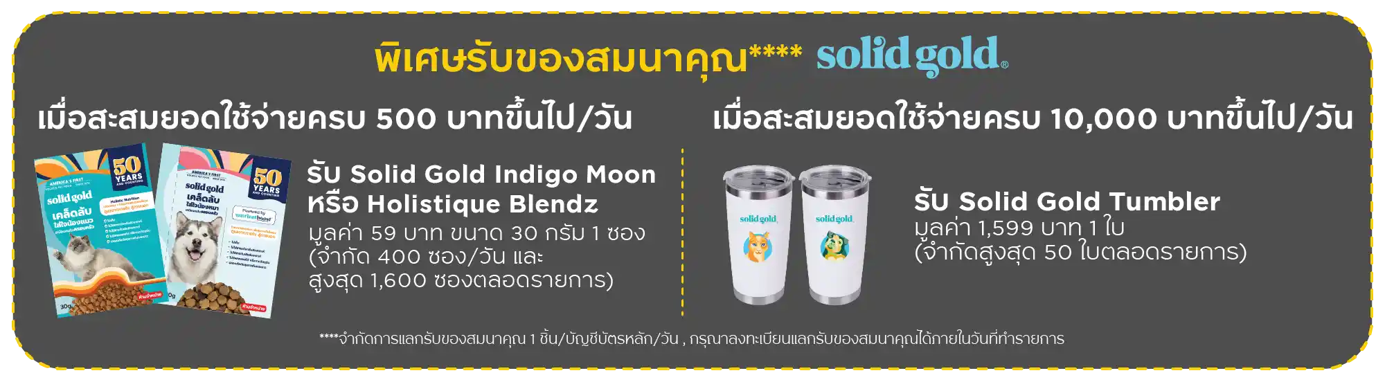 - Solid Gold Tumbler (มูลค่า 1,599 บาท) จำนวน 1 ใบ เมื่อสะสมยอดใช้จ่ายครบ 10,000 บาทขึ้นไป ต่อวัน โดยจำกัดสูงสุด 50 ใบตลอดรายการ กรุณานำเอกสารการลงทะเบียนแลกรับของสมนาคุณได้ที่บูธ Solid Gold (บูธ P20-P23)