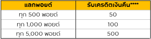 **เงื่อนไขการแลกคะแนนรับเครดิตเงินคืน